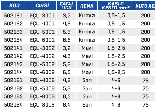 Çatal Tip İzoleli Kablo Uçları