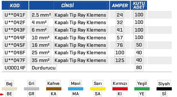 EURO Kapalı Tip Ray Klemensler