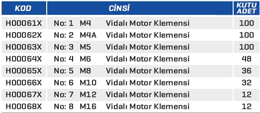 İzalatörler-Bara Serfilleri-Motor Klemensleri