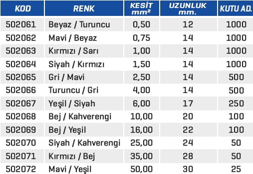 Dişi Faston Tip İzoleli Kablo Uçları